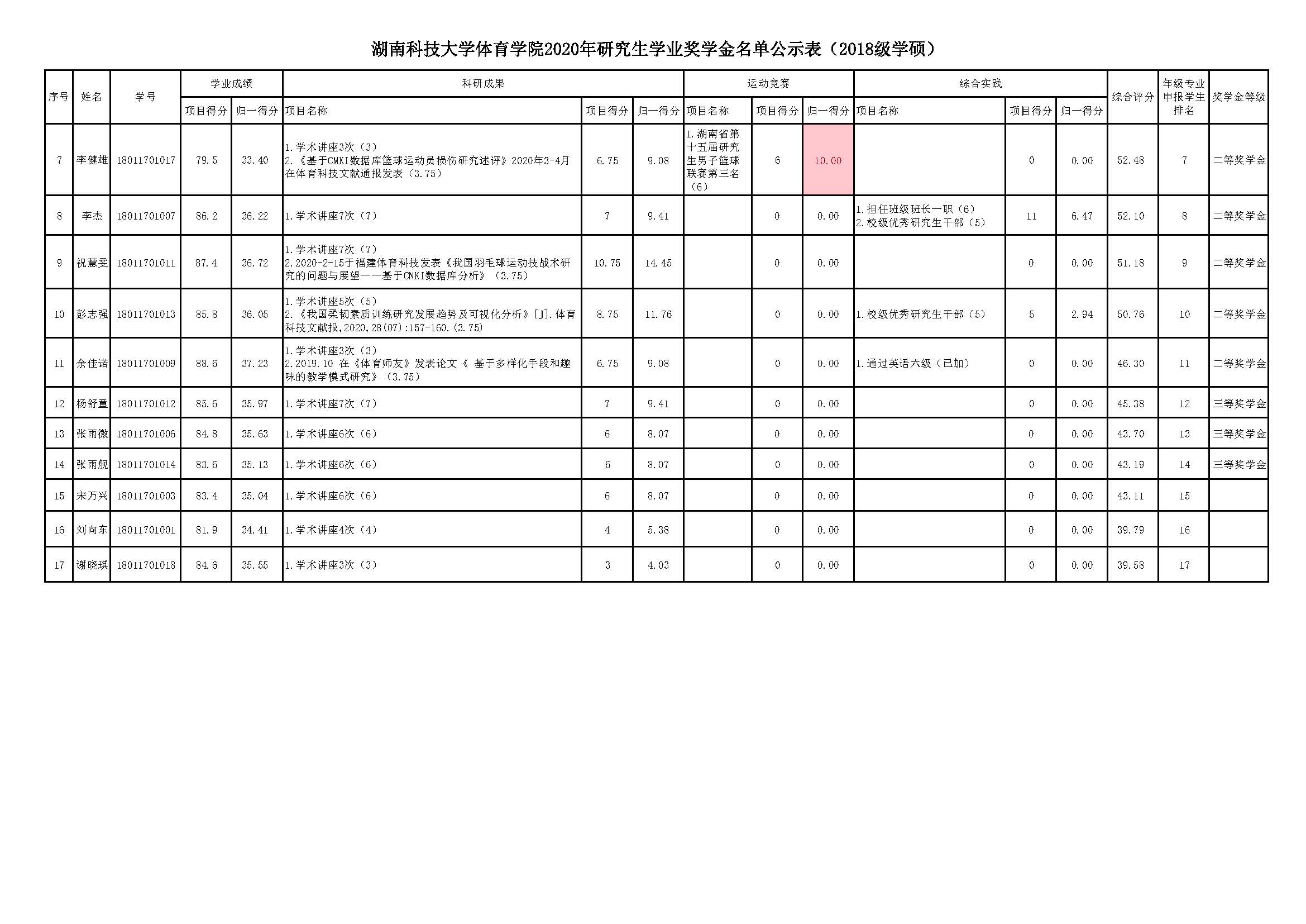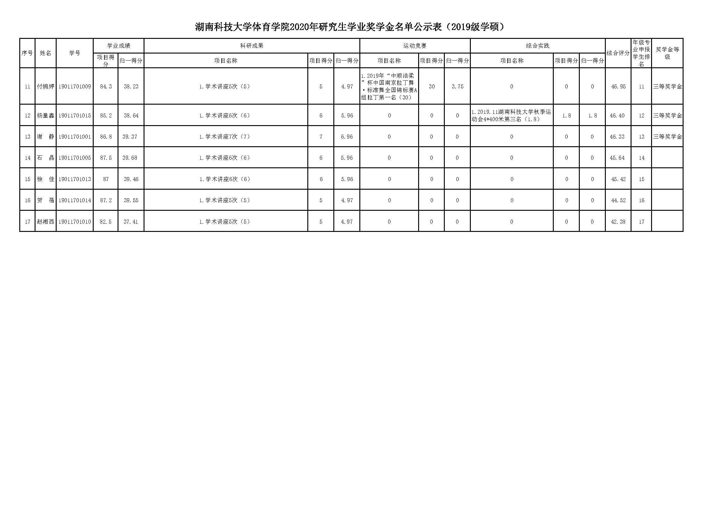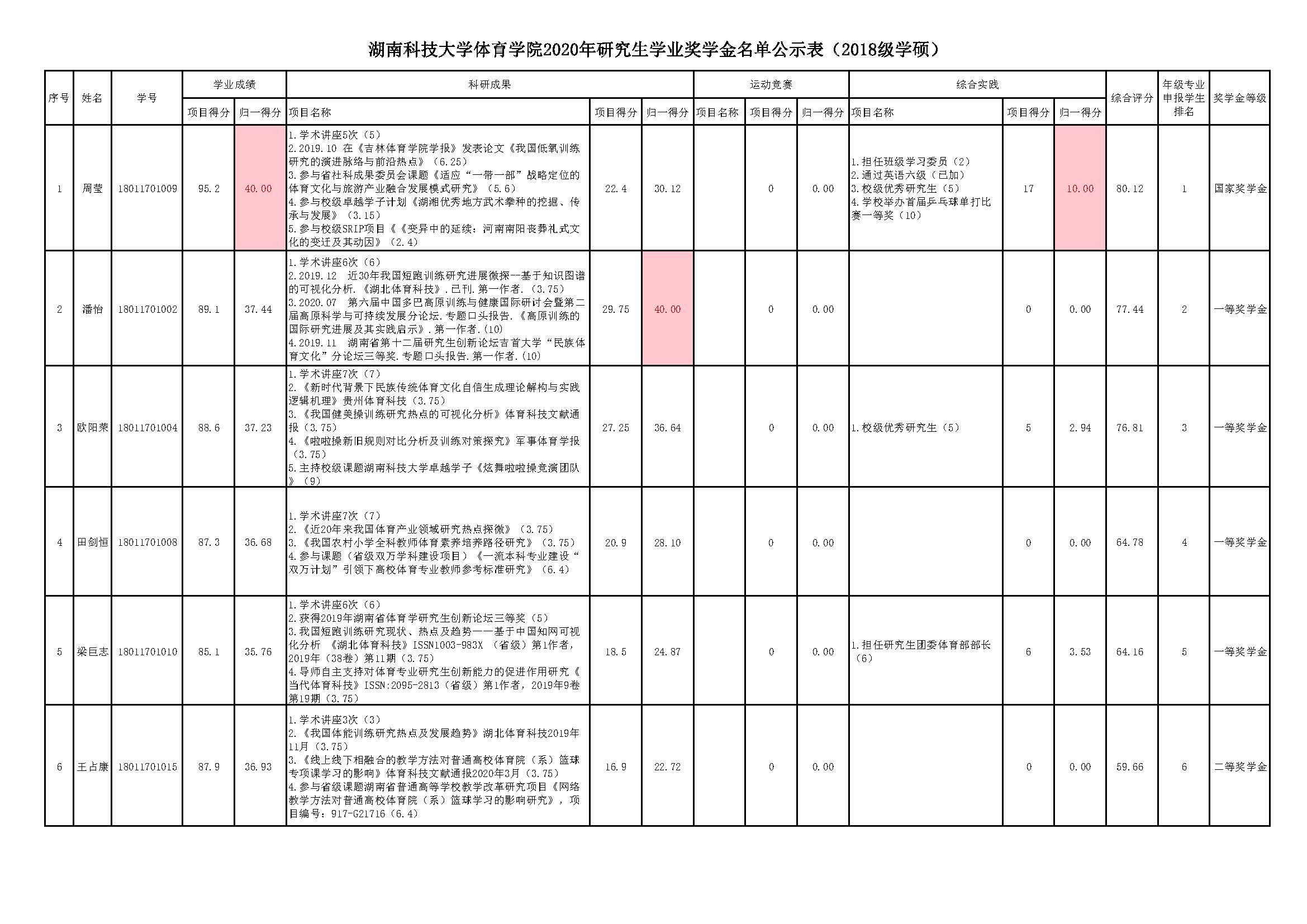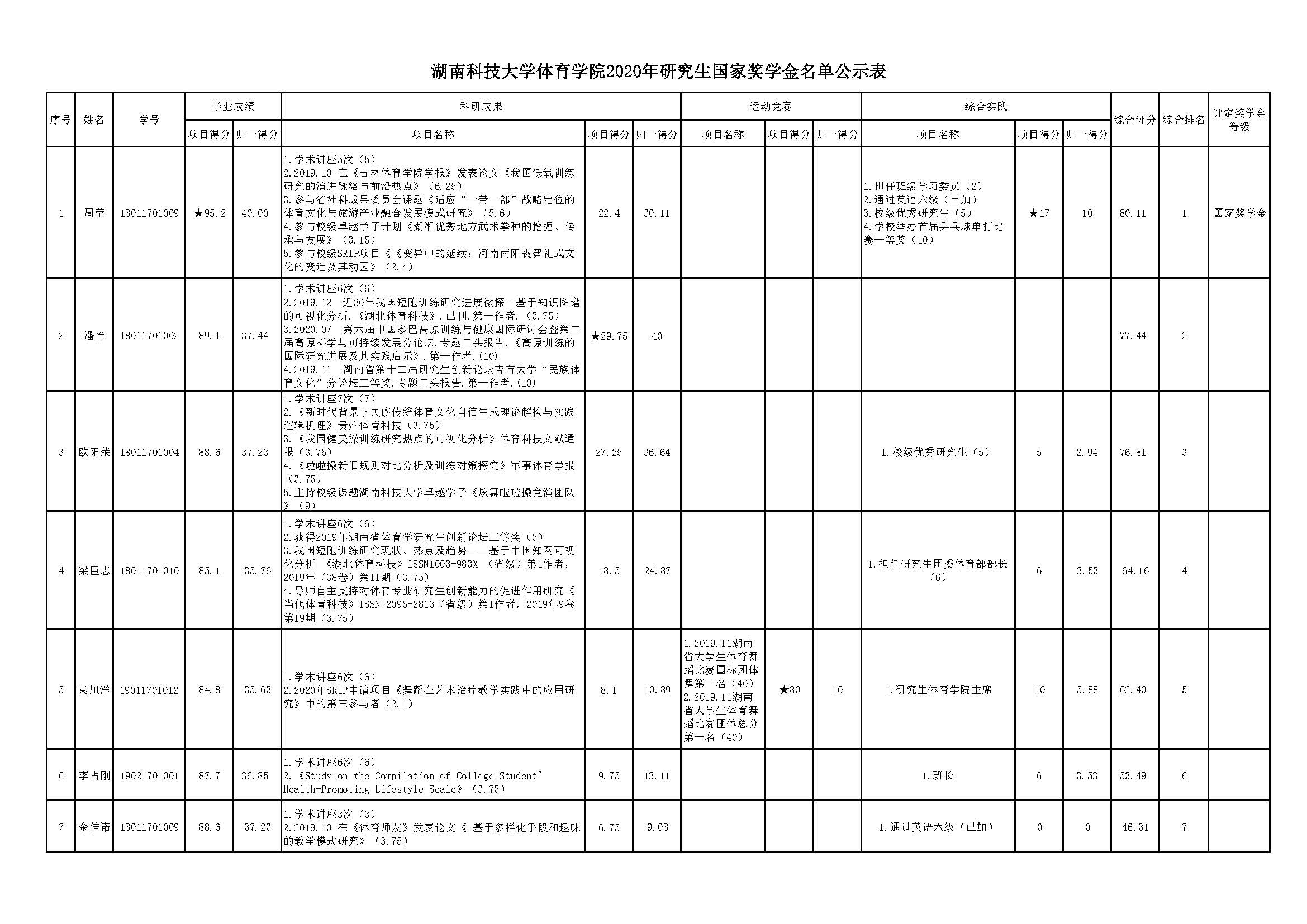 华体会官方网页版 2020年研究生奖学金评定情况公示通知