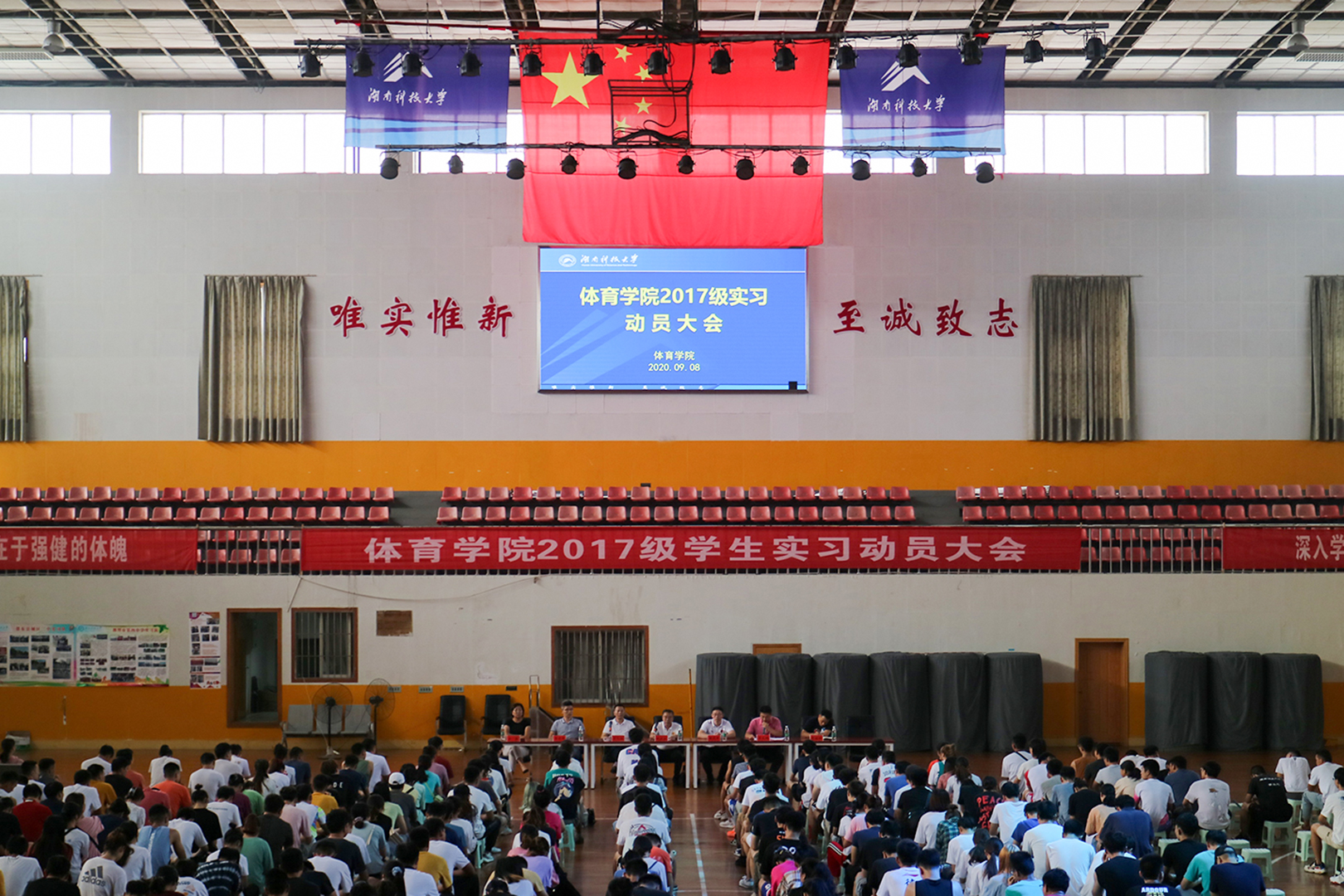 为做好华体会官方网页版2020年本科生实习工作,9月8日下午,华体会官方网页版于第一体育馆召开2017级学生实习动员大会。体育学院党委书记胡斌梁教授、华体会(中国)院长敬龙军教授、湖南科技大学社科联副主席李忆湘教授、华体会(中国)党委副书记梁宏军,各系部负责人及实习带队教师、全体实习生与会。会议由教学副院长李良明副教授主持。