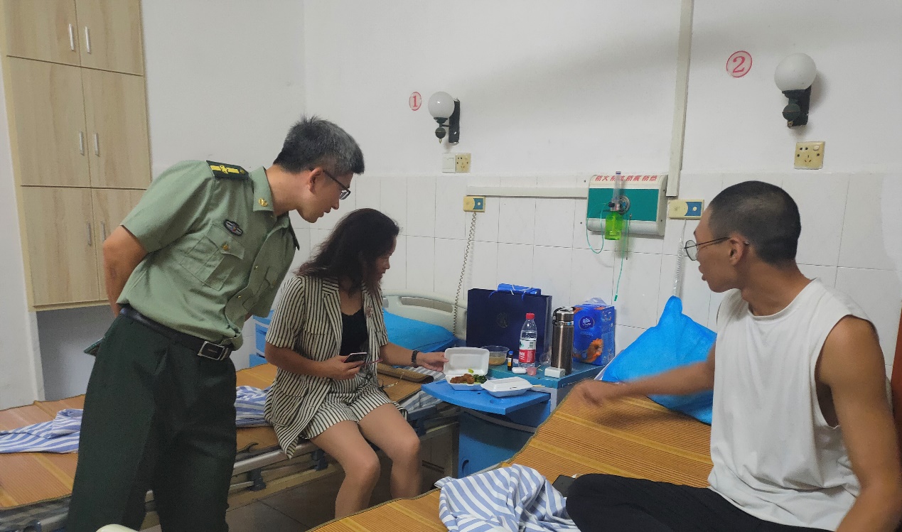 老师们还为陈翠广同学带去了牛奶等营养品,并询问了他的家庭情况,在住院期间伙食如何、是否有遇到困难、是否需要学校帮助等,并安慰陈翠广同学以身体为主,安安心心养病。随后,老师们还向陈翠广同学的主治医生了解其治疗情况以及后续治疗方案,并代表学校对医生表达感谢。
