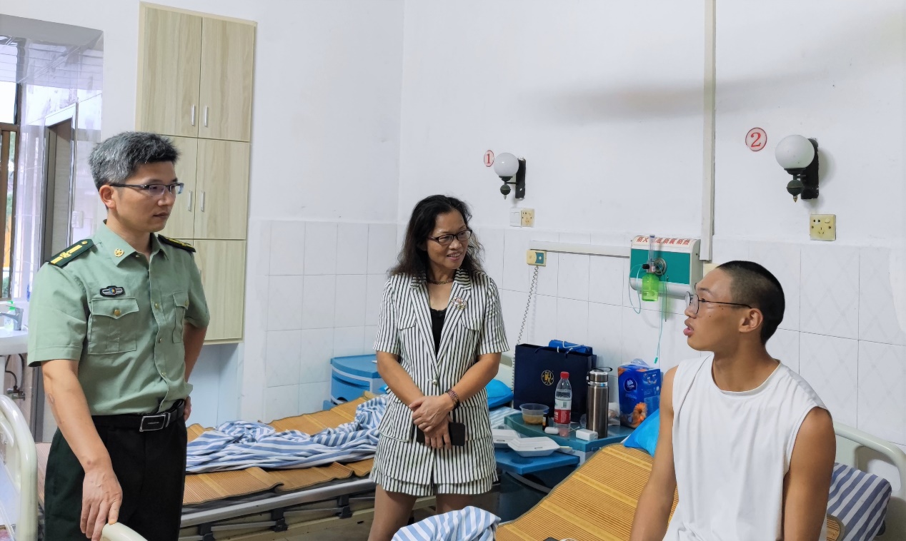 来到医院后,老师们详细了解了陈翠广同学的病情和恢复情况。陈翠广向老师说明了他是因为军训期间中暑导致的心脏方面的问题,加上水土不服和原来训练导致的暗伤旧病复发而住院的,现已基本恢复,已无大碍。