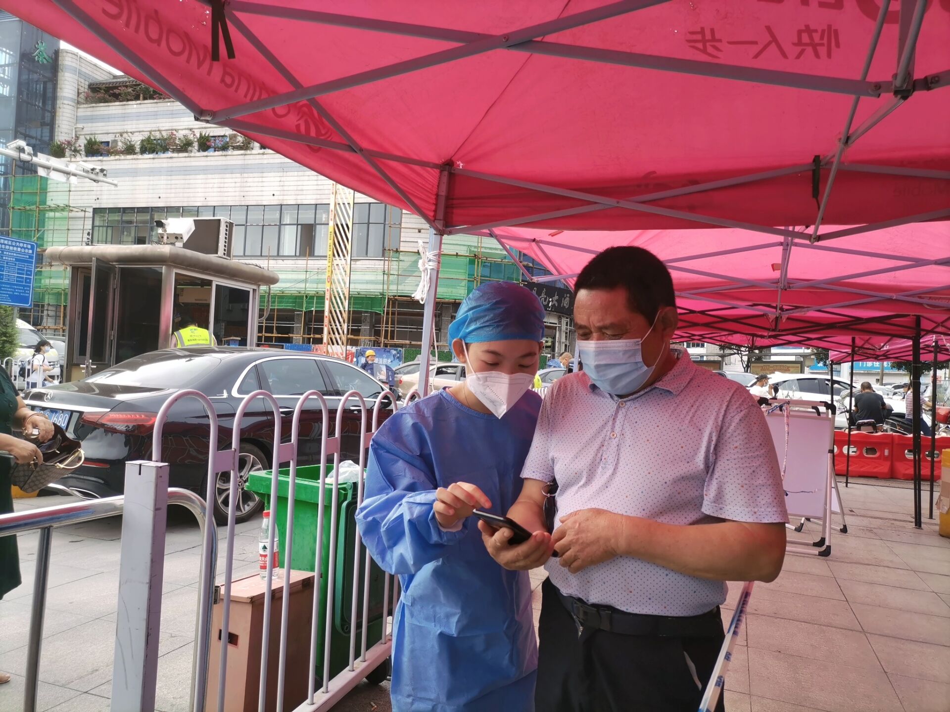 ▲吴磊磊正在“白石公园”核酸检测点录入信息