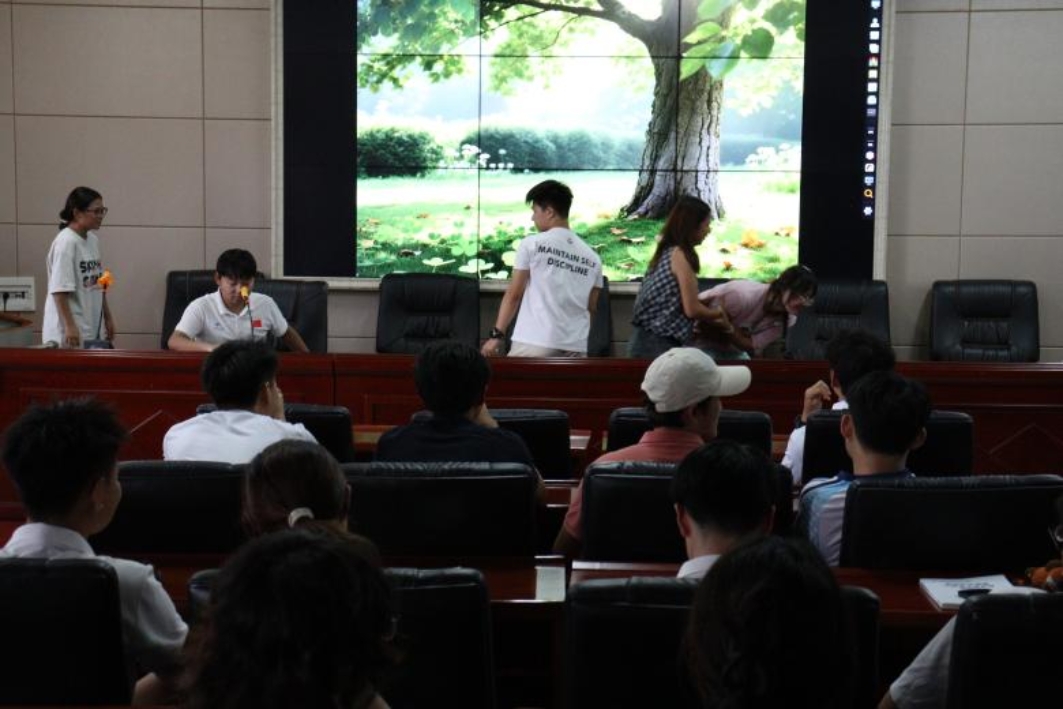 培训伊始,心健部骨干成员以心理情景剧的形式,生动演绎了新生在大学初期可能面临的情感困惑、军训适应难题以及心理危机信号识别等典型场景。三场既幽默风趣又贴近现实的表演,将抽象的心理健康问题具象化,帮助养成辅导员更直观地理解学生心理状态,为后续心理工作的开展奠定了坚实基础。在情景剧后,心理专干辅导员王朝老师结合剧中的典型案例出题,组织养成辅导员进行互动问答。通过引导大家分析问题、梳理思路、识别心理危机信号,王朝老师将理论知识与实际案例紧密结合,提升了培训的针对性与实用性,使养成辅导员在面对真实学生心理问题时更具应对能力。