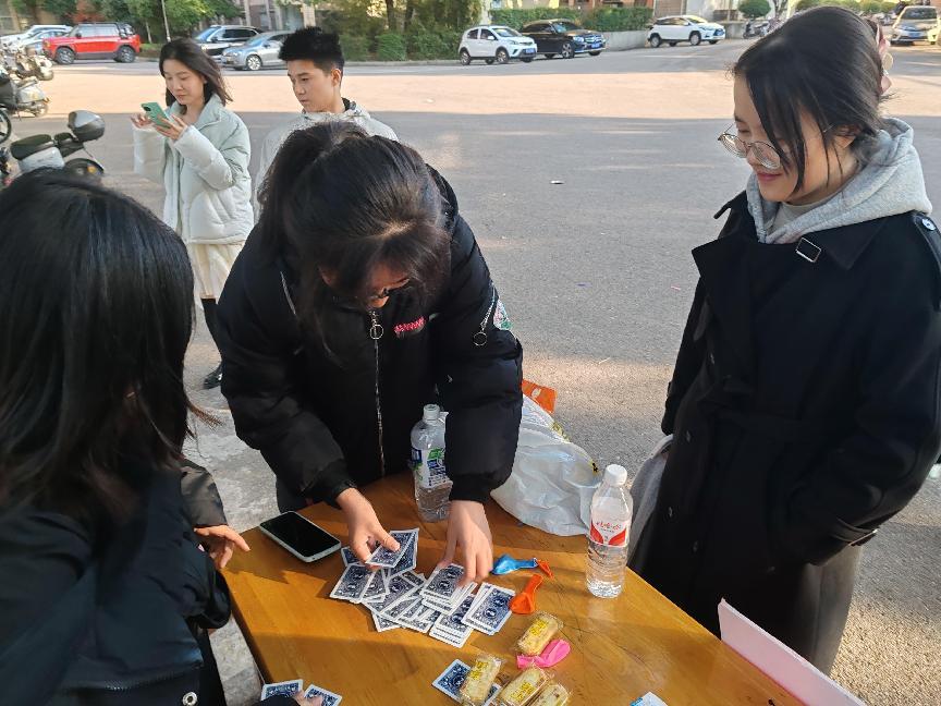 在活动进行过程当中,心健部委员耐心讲解游戏规则,同学们认真细心聆听,确认了解游戏规则后选取并开展游戏,游戏活动现场,同学们全身心沉浸其中,在阳光照射下,更加展现出了湖南科技大学学生的活泼与热情。本次游戏多为合作项目,在游戏开展过程当中,同学们也满心期待,准备迎接挑战,“烦恼气球大爆炸”活动似乎备受同学们青睐,随着每一次气球的爆炸,都伴随着欢呼声与喝彩声,大家沉浸在游戏的欢乐氛围里,尽情享受这无忧无虑的时光。在每一次游戏结束后心健部委员都将准备好的小礼品逐一送给了前来参与活动的学生。