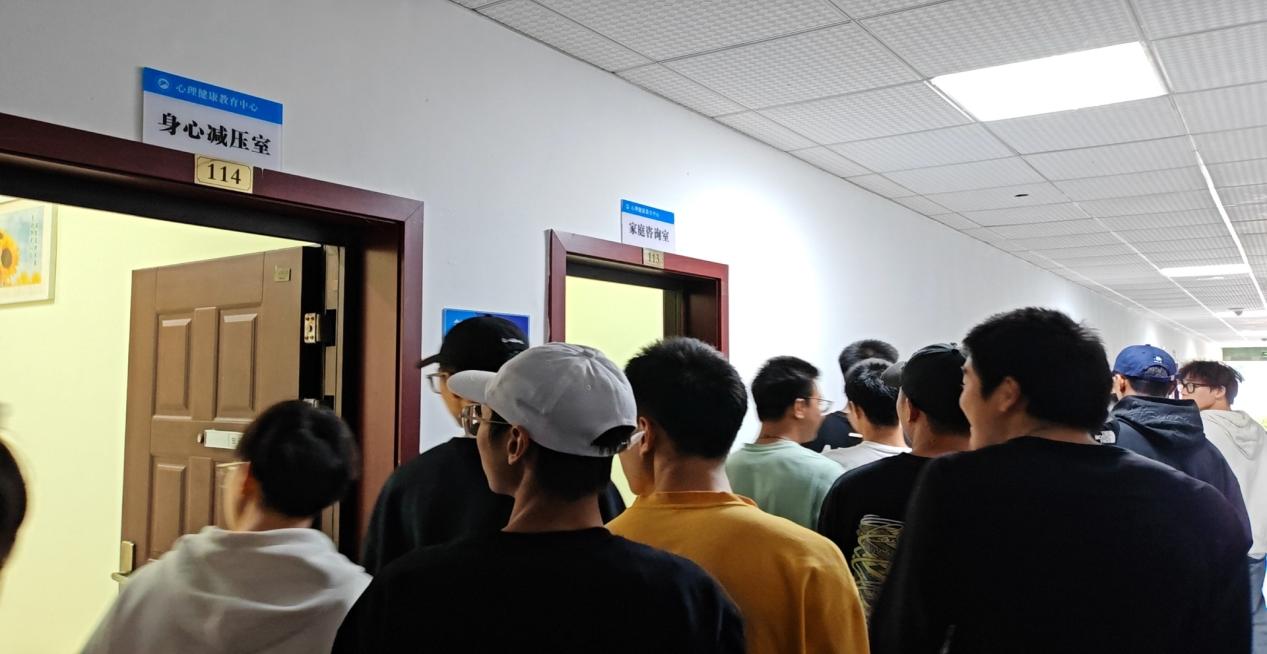 讲解员让同学们排成两列,首先带领同学们参观了心理咨询室,这是一个高度私密的空间,能够让同学们毫无顾虑地倾诉内心的困惑,烦恼和秘密。在这个房间里,同学们可以放心的表达自己的情绪。无论是关于学业压力,家庭问题,还是人际关系等方面的困扰。接着参观了情绪宣泄室,这里提供了一个安全的空间,让同学们通过击打沙袋、尖叫、摔打软质物品等方式,将这些负面情绪释放出来。后面还参观了身心减压室,这为学生提供了一个在紧张的学习之余能够放松身心的场所,学生可以通过按摩椅、冥想放松等方式释放学习过程中积累的压力。