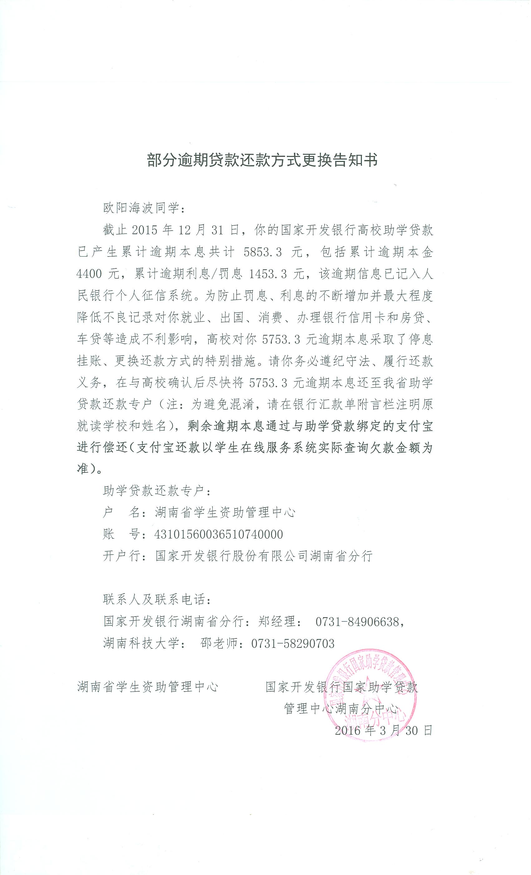 部分逾期贷款还款方式更换告知书(23)