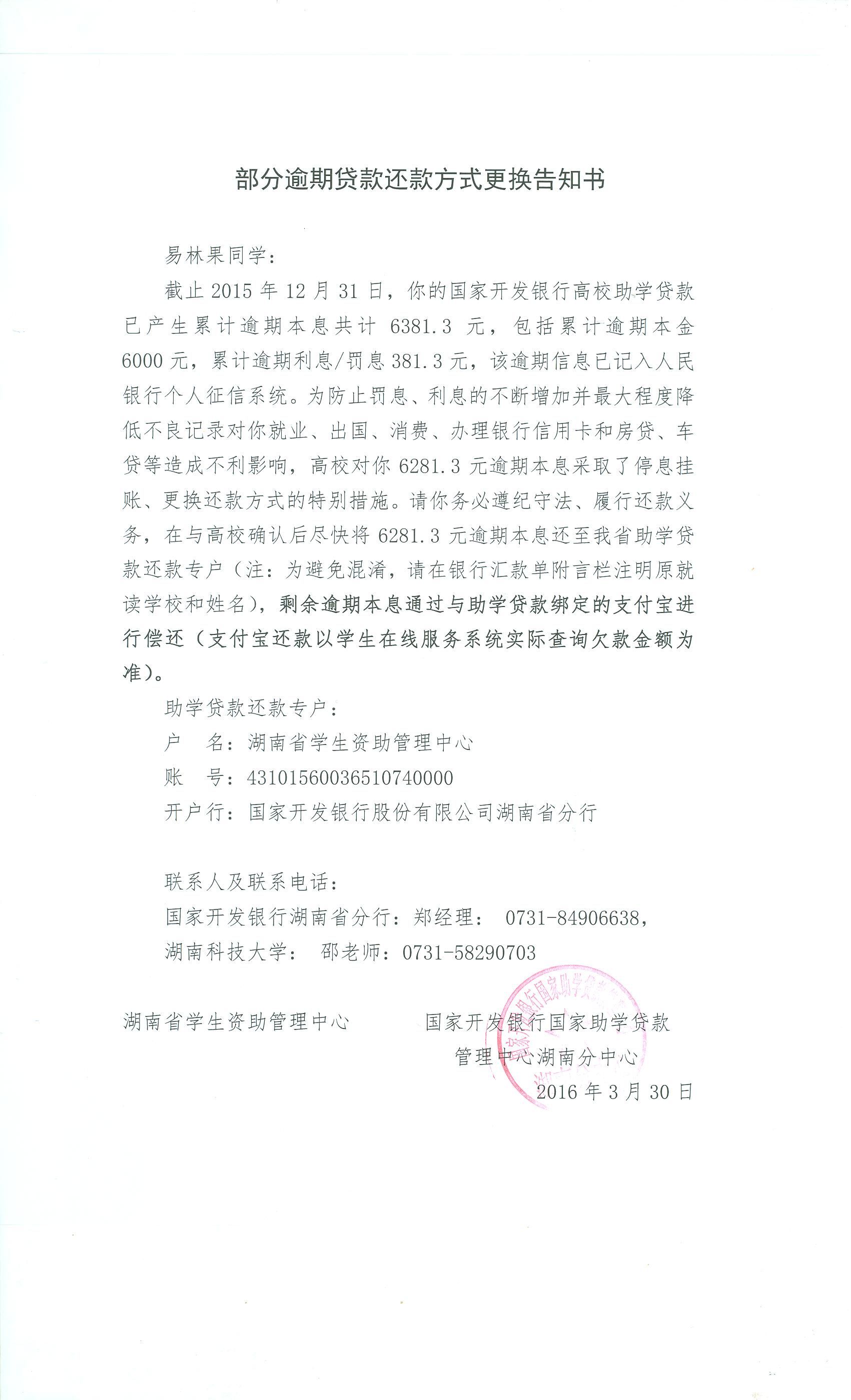 部分逾期贷款还款方式更换告知书(42)