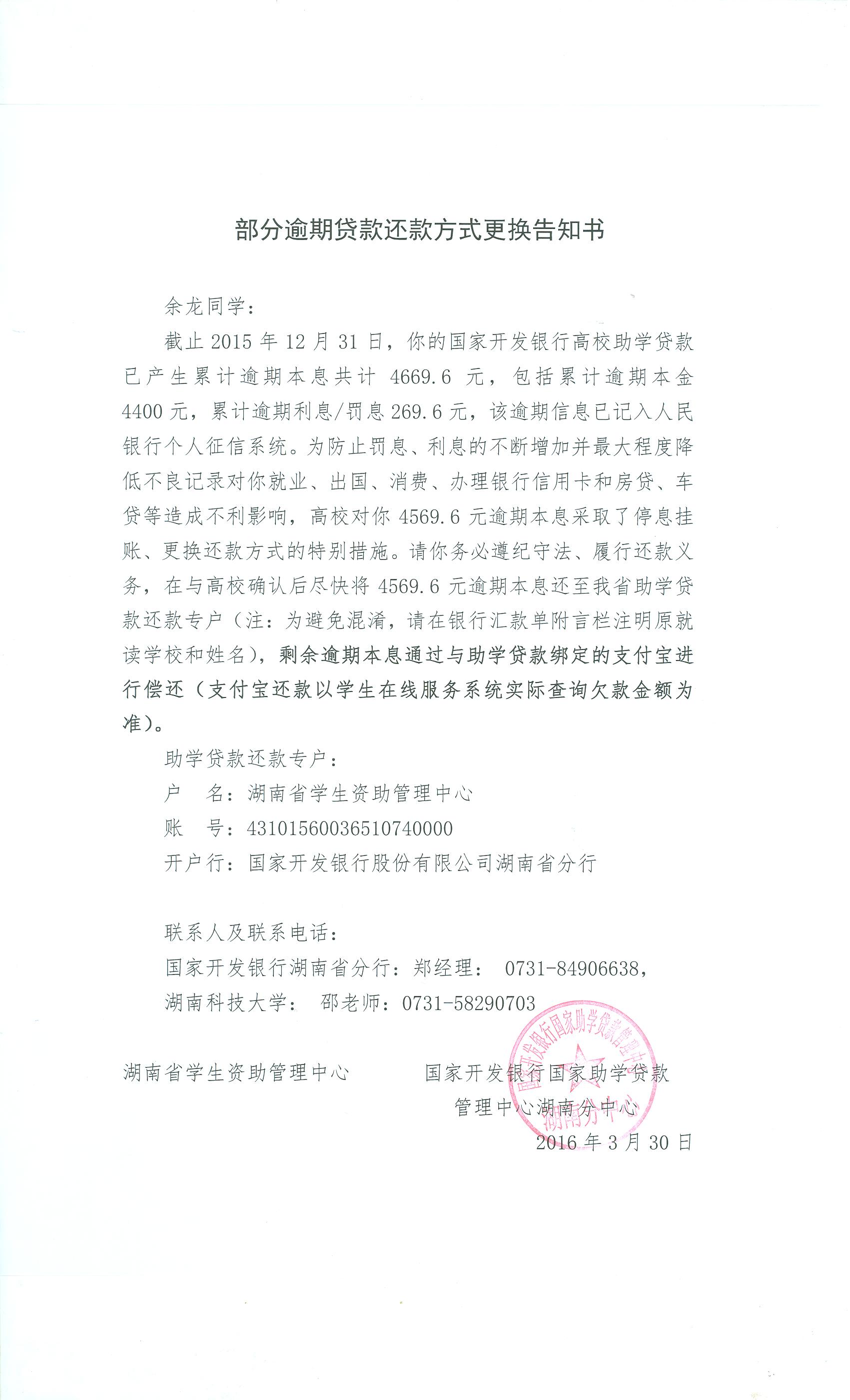 部分逾期贷款还款方式更换告知书(43)