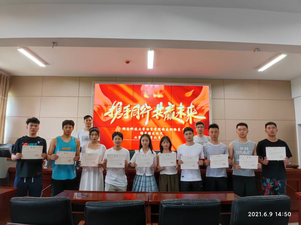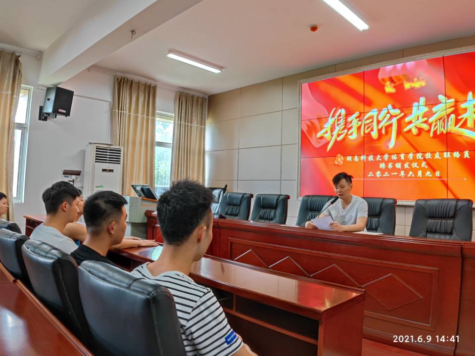 6月9日,华体会官方网页版在体育楼223会议室举行2021届校友联络员聘任仪式。学院党委副书记梁宏军、辅导员谭师铭以及2021届毕业生校友联络员参加了仪式。
